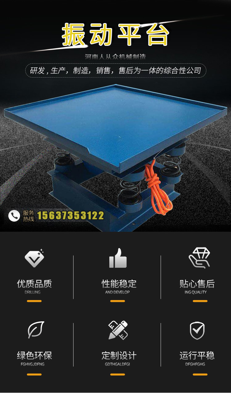 混凝土振實臺用于混凝土泥土砂漿等物料的振實,功率大,噪音低,功率可調(diào),操作簡單,帶有自鎖緊功能,可保證在生產(chǎn)線準確定位。