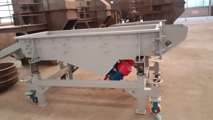 客戶定制ZXS-0718直線篩:普鋼材質,篩板為不銹鋼沖孔板(δ=3mm 25*25mm孔),裝萬向輪,電機功率0.37kw*2 電壓220V;