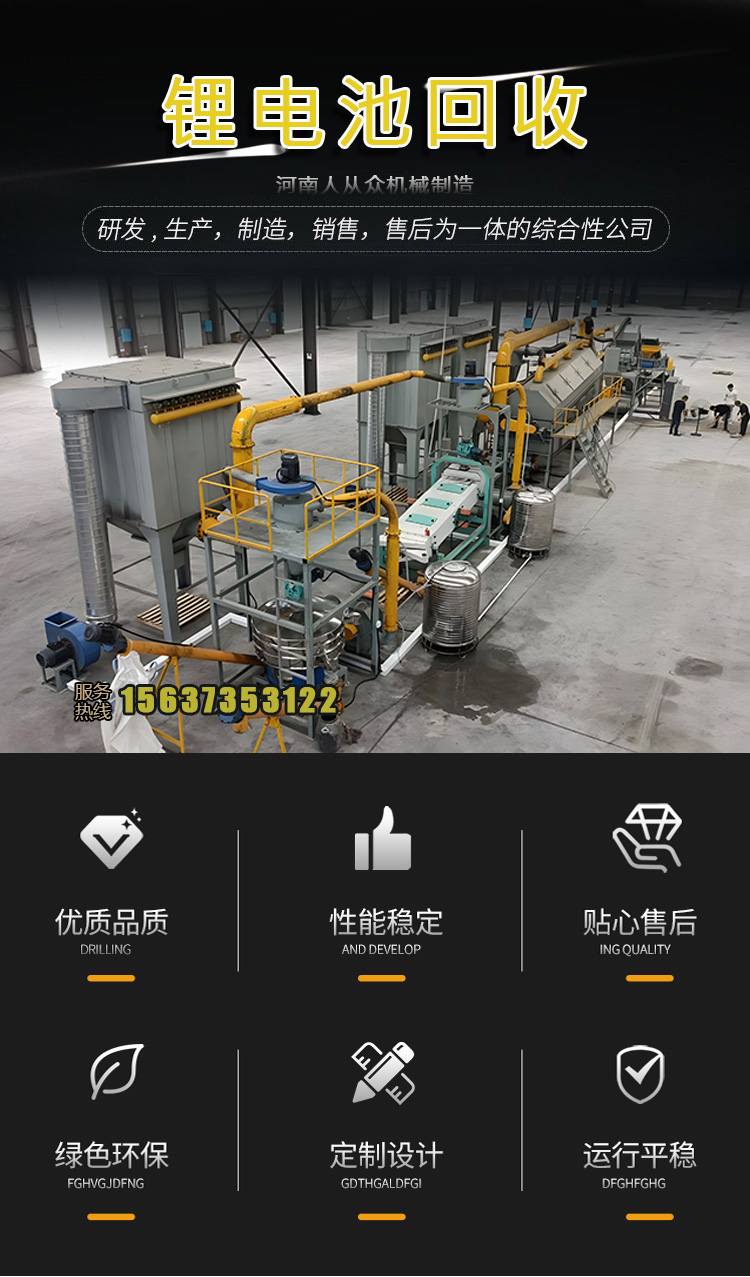 廢舊新能源鋰電池回收處理設備,鋰電池破碎分選設備生產線,全程智能化流水線作業。