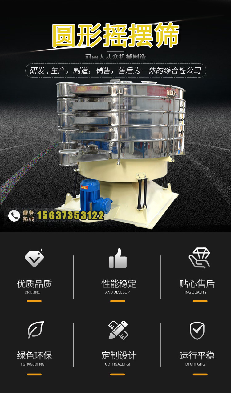 圓形搖擺篩的仿人工設計是針對高產、高精度物料篩分的需求而專門設計的高效篩分機。