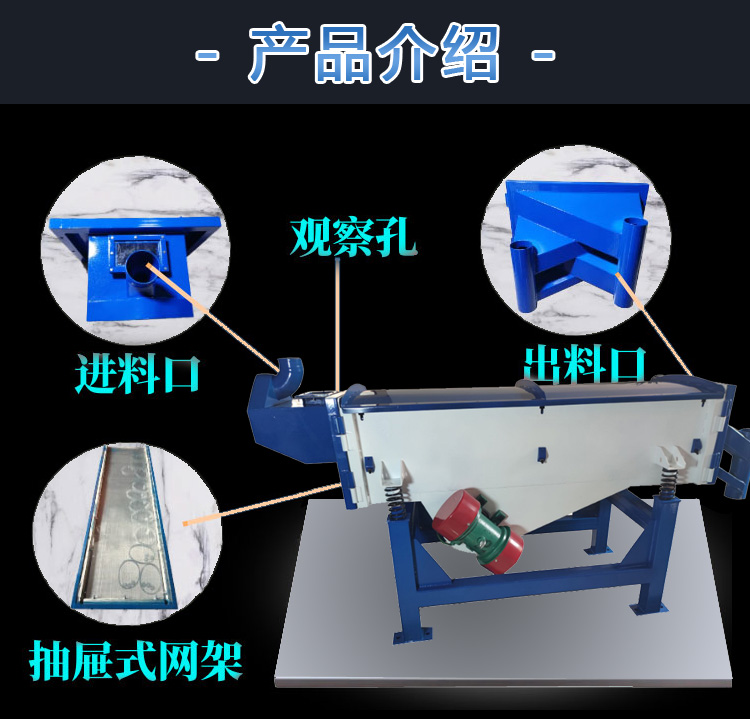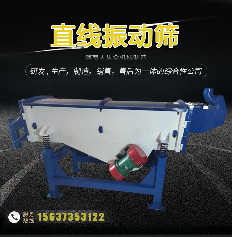 直線振動篩迫使物料在篩網上被拋起向前做拋物線運動,以不同的篩網過濾達到篩分目的。具有高產低耗、自動卸料等特點,適合流水線作業。