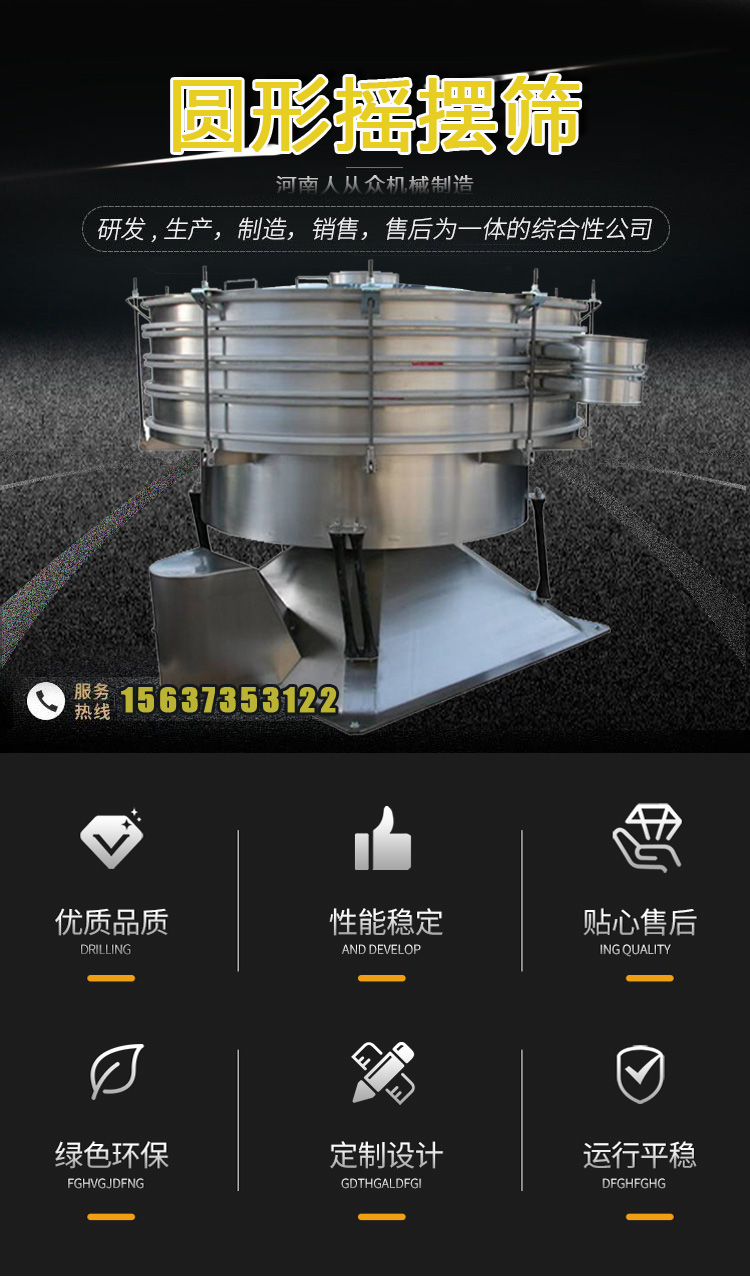 304不銹鋼圓形搖擺篩的仿人工設(shè)計(jì)極大程度上滿足了物料的高產(chǎn)、高效、高精度篩分需求,它是對原始篩分的機(jī)械模擬,相比普通旋振篩它有著高達(dá)幾倍的產(chǎn)量,篩分效率更是能達(dá)到90%以上,密閉除塵,操作安全。