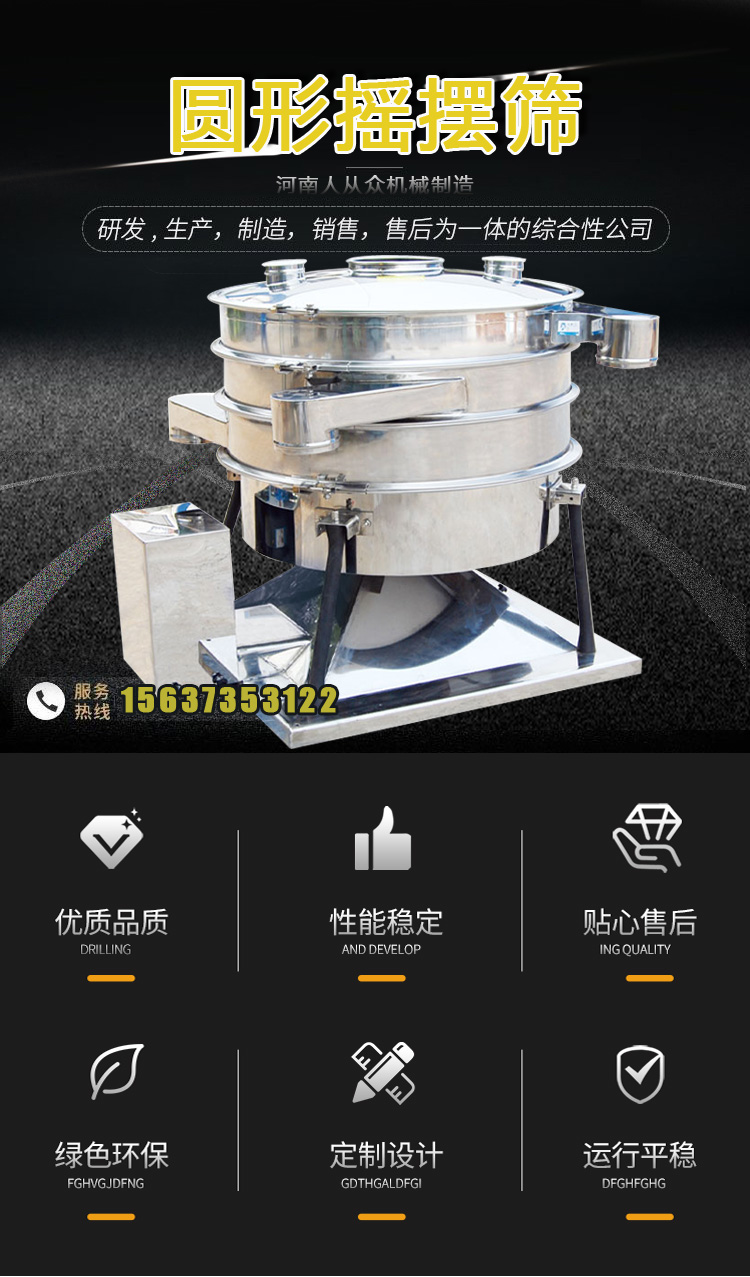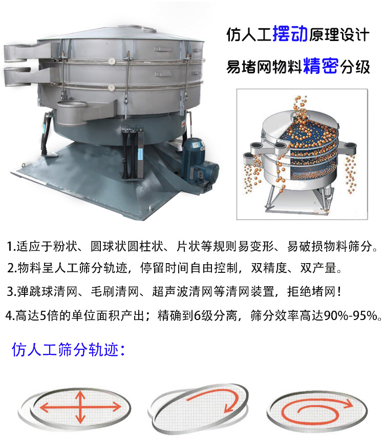 圓形工業(yè)過濾振動(dòng)篩的仿人工設(shè)計(jì)極大程度上滿足了物料的高產(chǎn)、高效、高精度篩分需求,它是對(duì)原始篩分的機(jī)械模擬,相比普通旋振篩它有著高達(dá)幾倍的產(chǎn)量,篩分效率更是能達(dá)到90%以上,密閉除塵,操作安全。