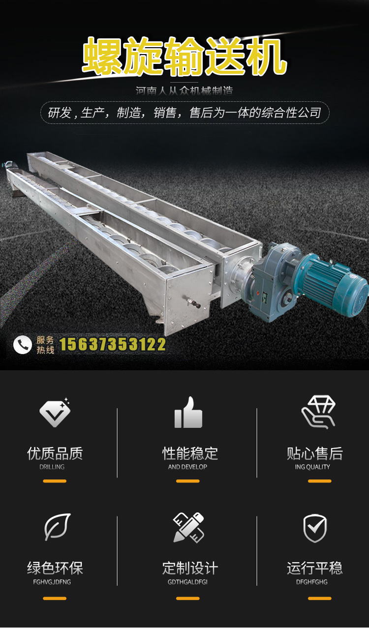 螺旋輸送機分為兩種類型:有軸螺旋輸送機和無軸螺旋輸送機;其利用螺桿旋轉將物料推送到目的的機器。一般來說,我們通常所說的螺旋輸送機是指軸式螺旋輸送機。